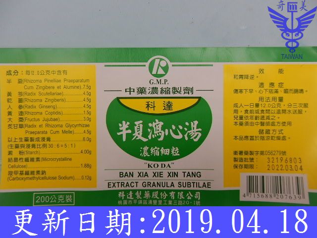 半夏5、黃連1、黃芩3、乾薑3、人參3、炙甘草2、大棗3