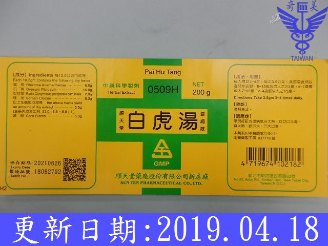 清熱生津。陽明氣分熱盛,壯熱面赤,煩渴引飲,汗出惡熱,脈洪大有力,或滑數。用於感冒,流行性感冒,麻疹