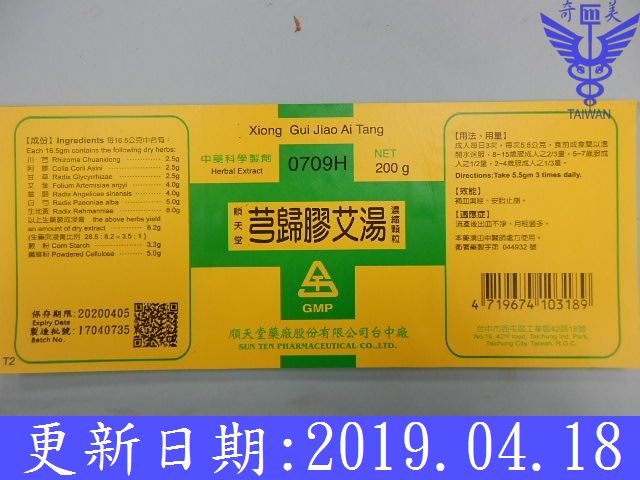 生地黃8、芍藥5、當歸4、艾葉4、川芎2.5、阿膠2.5、甘草2.5