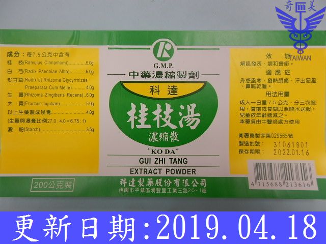 桂枝6、白芍6、炙甘草4、大棗5、生薑6