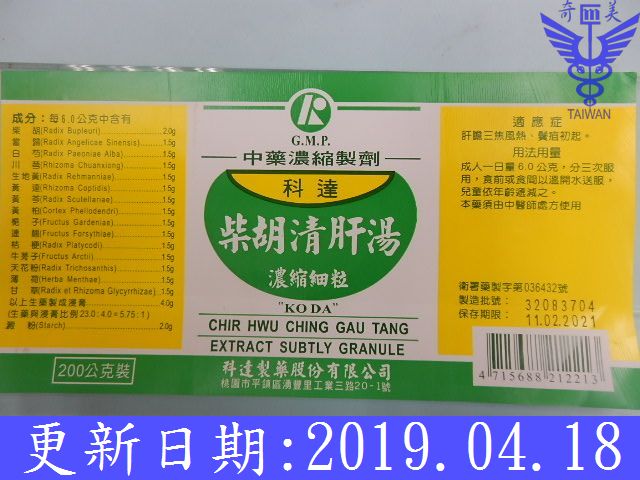 柴胡3、川芎2、黃芩2、連翹2、天花粉2、當歸4、生地黃3、赤芍藥3、山梔子2、牛蒡子3、甘草2、防風2