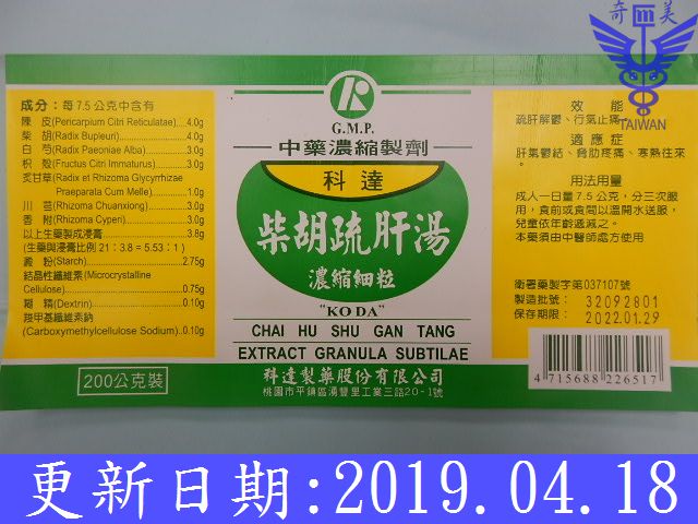 柴胡3.2、陳皮3.2、川芎2.4、香附2.4、枳殼2.4、白芍2.4、甘草0.8