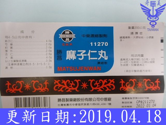 麻子仁7.5、白芍2.5、枳實2.5、厚朴2.5、杏仁2.5、大黃5