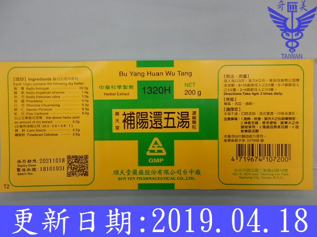 黃耆16、當歸尾3.2、赤芍2.4、地龍1.6、川芎1.6、桃仁1.6、紅花1.6