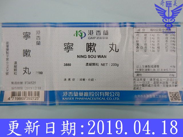 桔梗2.4、川貝2.4、半夏2.4、石斛2.4、蘇子2.4、茯苓2.4、薄荷葉1.8、杏仁1.8、桑白皮1.8、橘紅1.2、甘草0.6、榖芽1.2