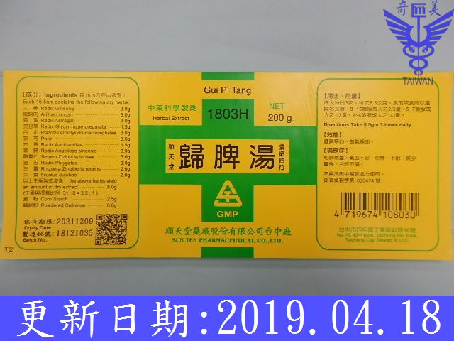 黃耆3、當歸3、人參3、白朮3、茯苓3、酸棗仁3、龍眼肉3、炙甘草1.5、木香1.5、生薑2、大棗2、遠志1