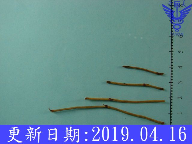 | 鑑 別 | 草麻黃:呈細長圓柱形、少分枝,直徑1∼2 mm,有的帶少量的木質莖。表面淡綠色至黃綠色,有細的縱稜線。節明顯,節間長2∼6 cm,節上有膜質鱗葉,長3∼4 mm,裂片2稀為3片,先端反曲,基部常連合成筒狀。質輕脆,易折斷,折斷時有粉塵飛出,斷面略呈纖維性,外圍為綠黃色,中央髓部呈暗紅棕色。氣微香,味微苦澀。 |