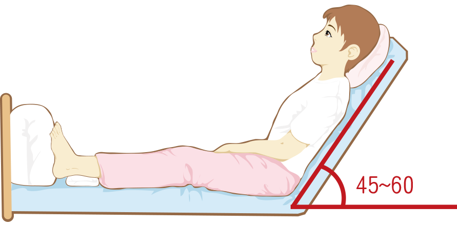 3.協助病人採半坐臥或坐姿(45~60度)以利食物灌入。