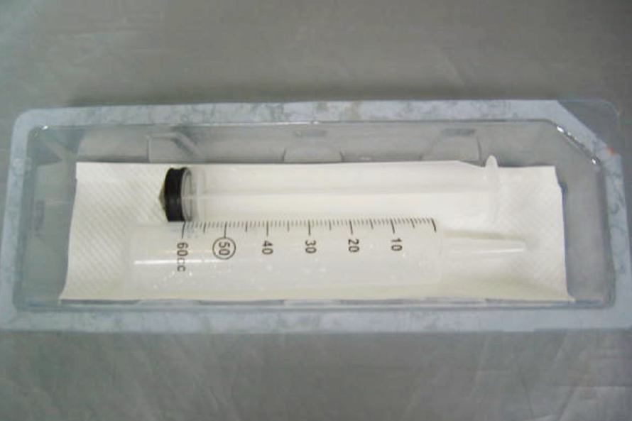 7.灌食完畢後,再灌入約30~50㏄的溫開水,將鼻胃管內食物沖入後,關閉管夾,或將鼻胃管末端反折塞入開口中。
