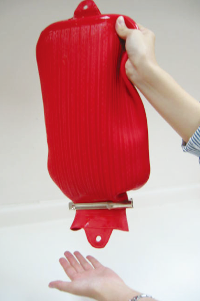 2.平放輕壓排氣後以夾子夾緊,倒拿檢查有無漏水。