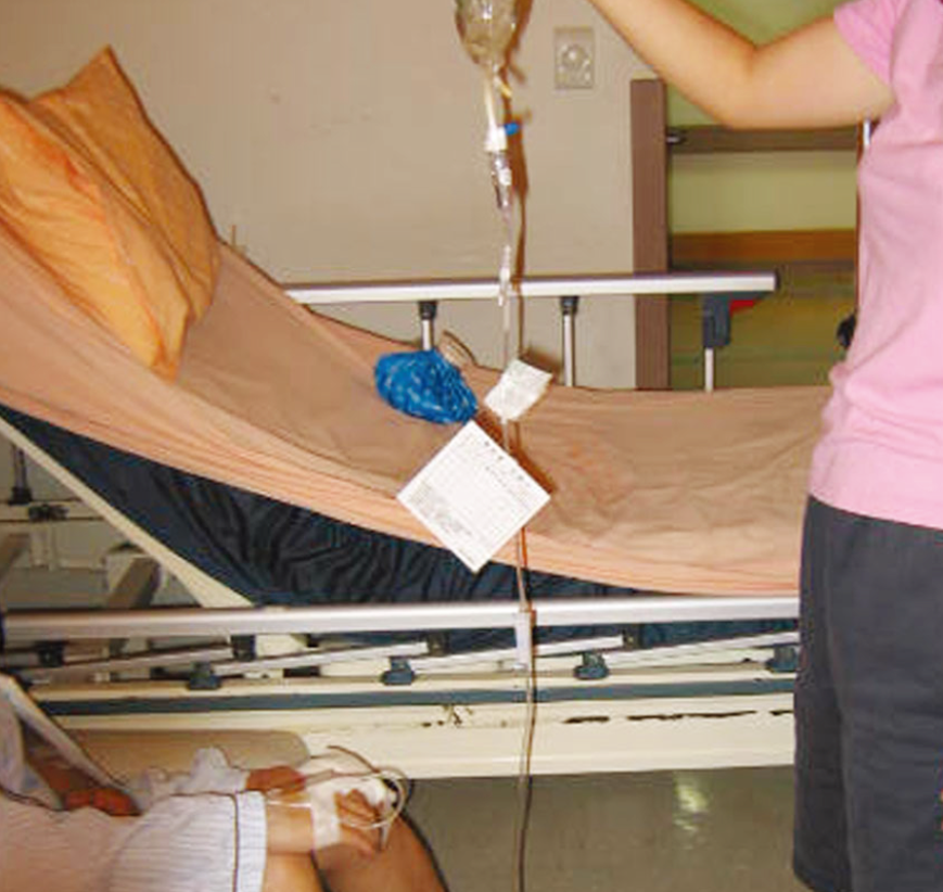 2.點滴請放置比注射部位高,若有回血情形,請將注射部位放低。