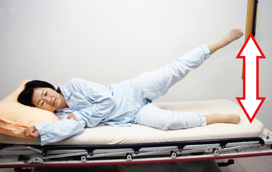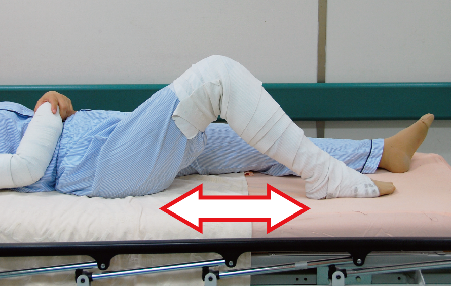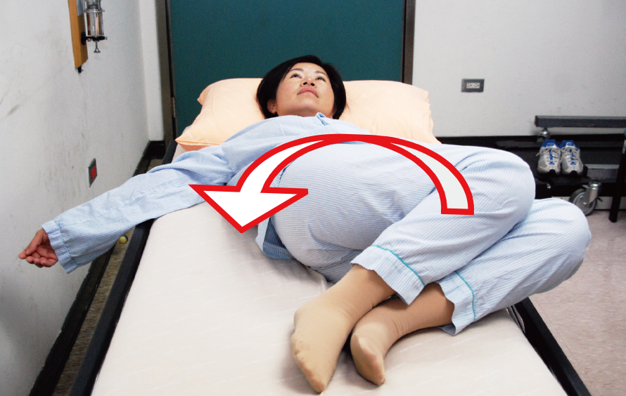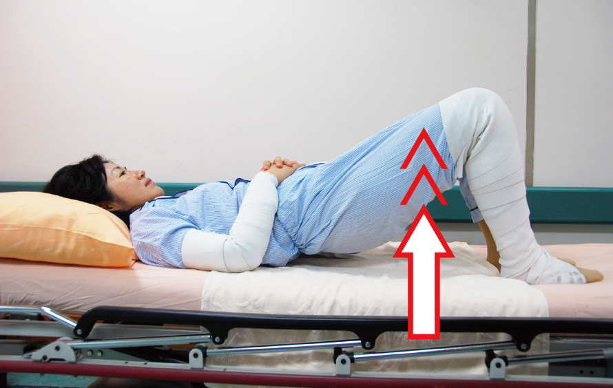 平躺姿勢下,病人將下肢沿著床面彎曲伸直。