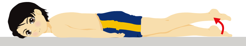 - 俯臥抬腿運動:俯臥,將一腿伸直完全抬離地面約十公分,停住六秒,再換另一腿。做完後,改成仰臥,將膝蓋拉向胸前。(如前4.伸展運動)