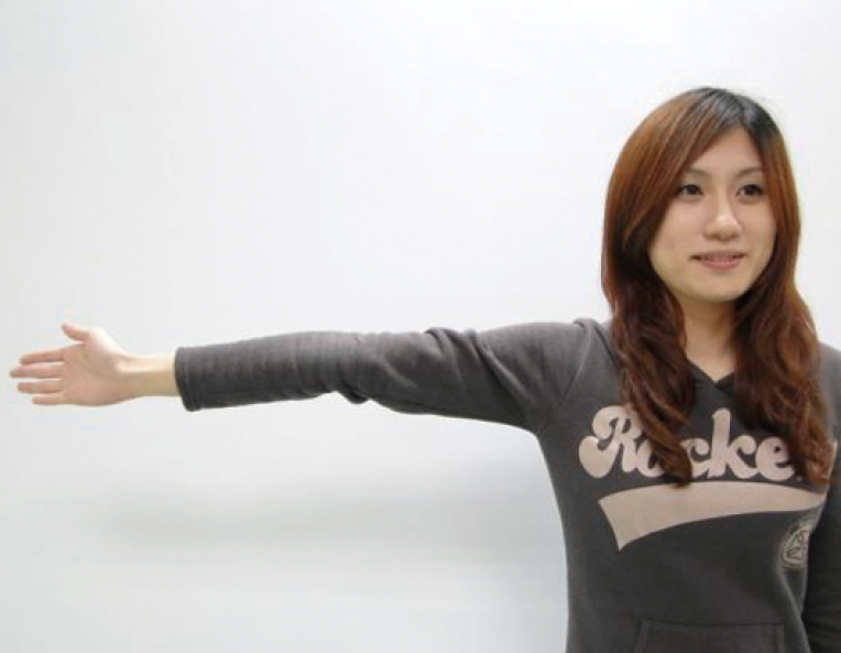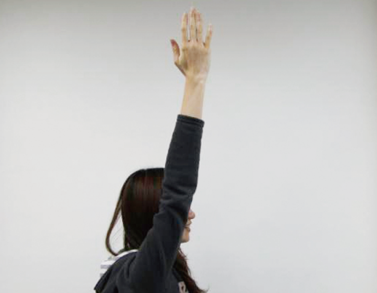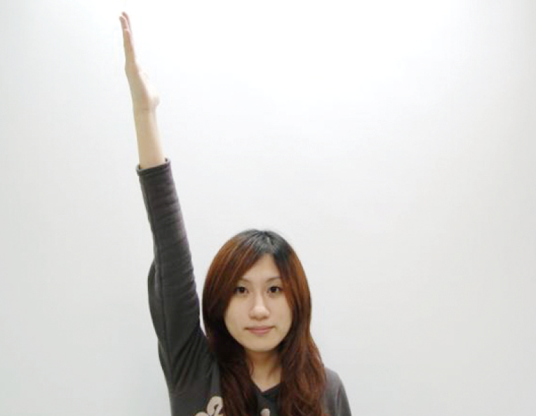 - 肩部前舉向上:手心朝健向內,手臂伸直,將手舉至最高的位置。