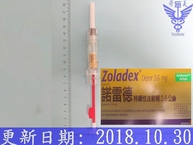 - 3.6毫克劑型作為手術前薄化子宮內膜的用途時,應於注射第2劑後2個禮拜內進行手術。