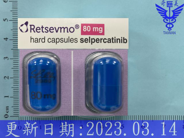 - 體重50公斤以上成人:160mg(兩顆80mg selpercatinib膠囊)口服,每天兩次,約間隔12小時,直到疾病惡化或出現無法接受的毒性為止。