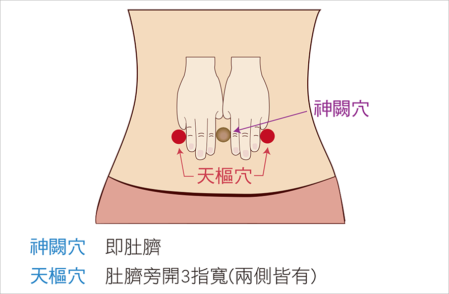 - 腹瀉:溫敷、灸療神闕穴