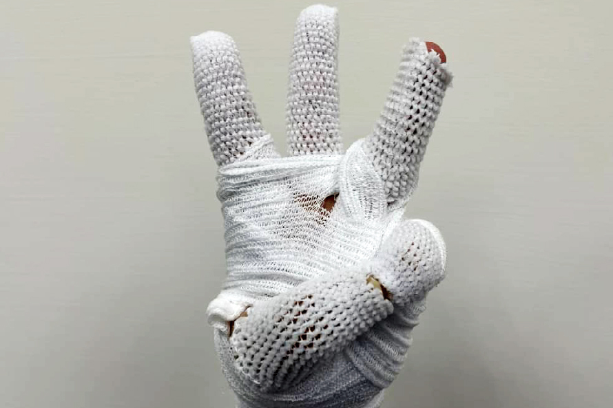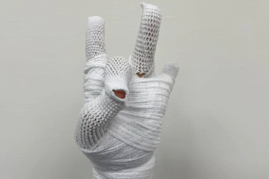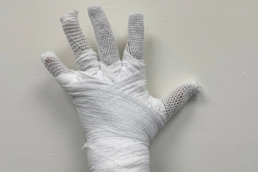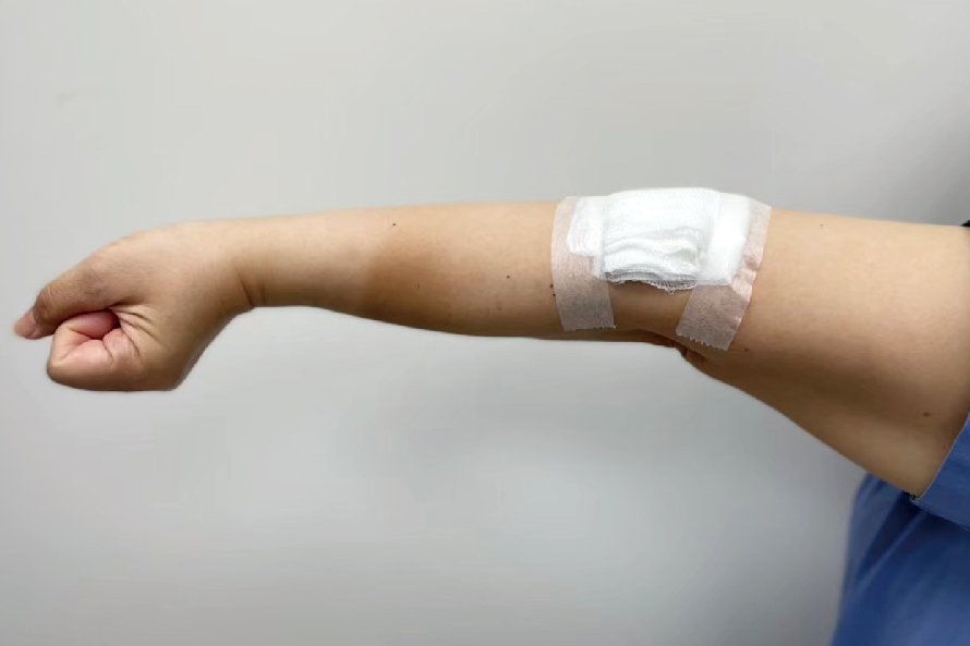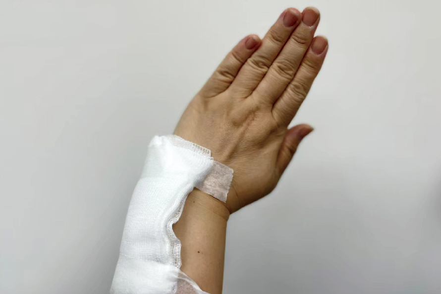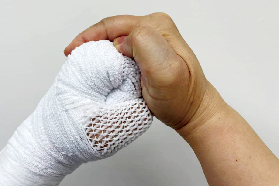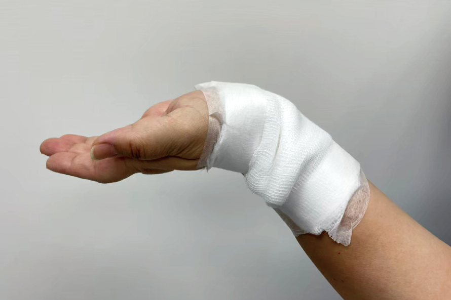 擺位:最安全的姿勢手腕背曲30度,掌指關節彎曲70度,近端指關節及遠端關節保持全直。拇指保持在外展及對掌的姿勢,避免指間關節過度伸長展(圖10)。