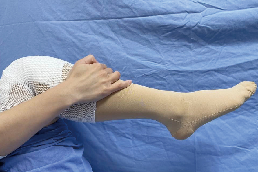 擺位:保持伸直姿勢。膝前有燙傷時,可稍微彎曲(圖22)。