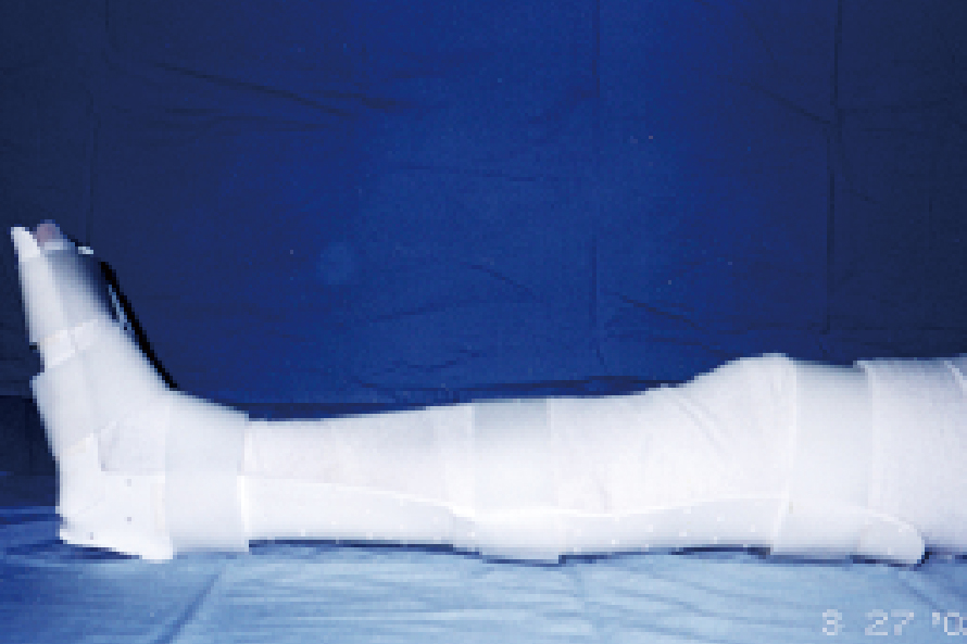 擺位:休息時利用枕頭、床尾或副木將腳板與小腿呈90度垂直(圖26)。