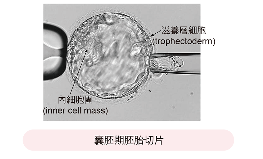 試管嬰兒療程待取出卵子後,與精子在體外進行授精並發育至囊胚期胚胎(blastocyst,約取卵後5-7天)時進行切片,而囊胚期胚胎主要由兩部份組成,內細胞團(inner cell mass)及滋養層細胞(trophectoderm),前者日後發育為胎兒,後者形成胎盤,為避免影響胎兒的發育,目前囊胚期切片是取自滋養層少量細胞,再送檢分析該胚胎是否帶有該家族之基因問題,檢測報告約需10個工作天。所以完成切片後,須先將胚胎冷凍保存,等待檢測結果出爐之後,再另行安排適合時間解凍植入。