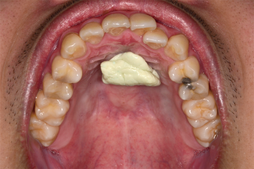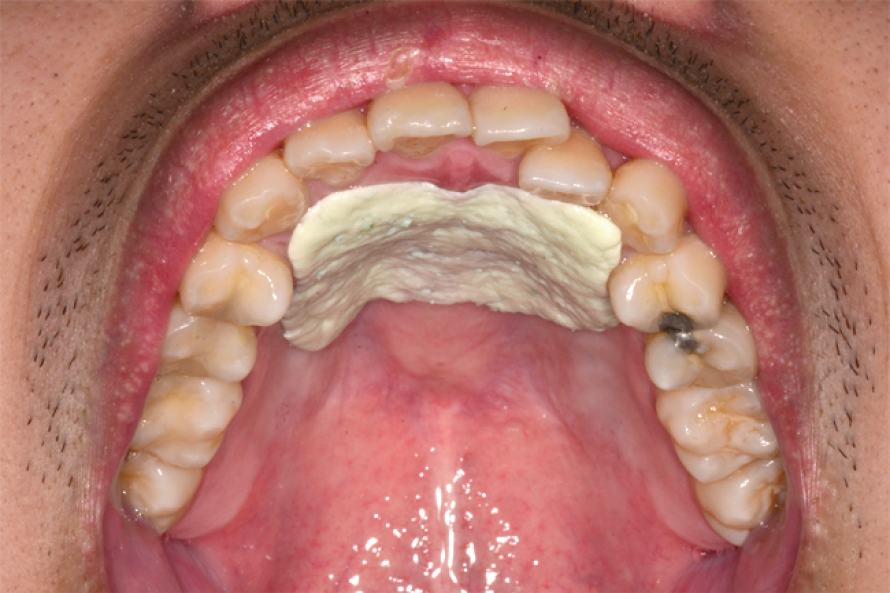 - 利用舌頭往上舉的力量把口香糖推到上顎穹窿的位置(圖二),訓練咬合與吞嚥的動作,保持用舌頭讓口香糖壓在上顎穹窿處(圖三),讓口香糖完全的經過舌頭的壓力平鋪到上顎穹窿處(圖四)。