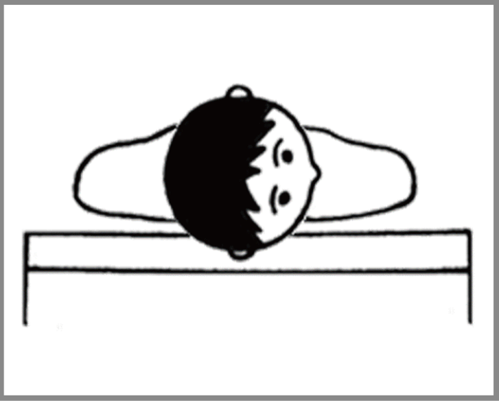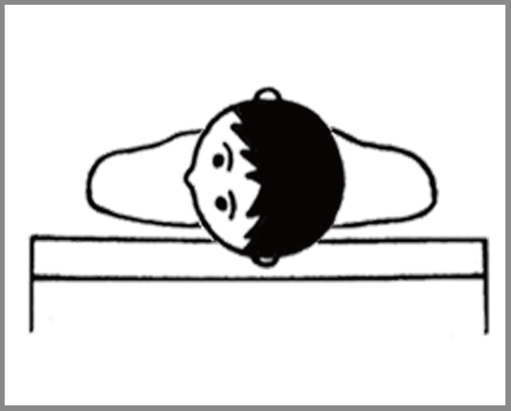 - 頭部與身體同時向左轉,平躺後,頭部轉至右側90度,維持這個姿勢30秒後,保持此姿勢慢慢坐起。