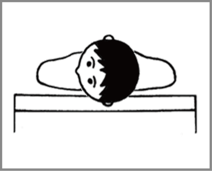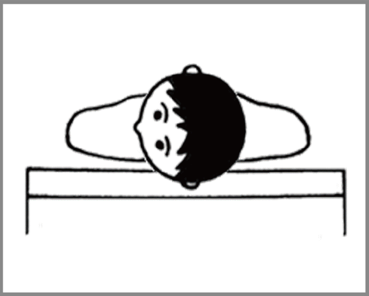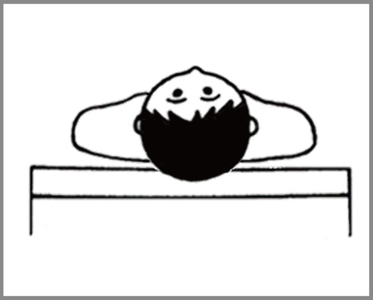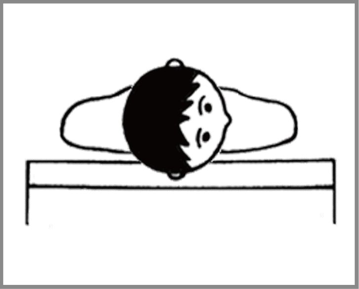 - 頭部與身體同時向左轉,平躺後,頭部轉至右側90度,維持這個姿勢30秒後,保持此姿勢慢慢坐起。
