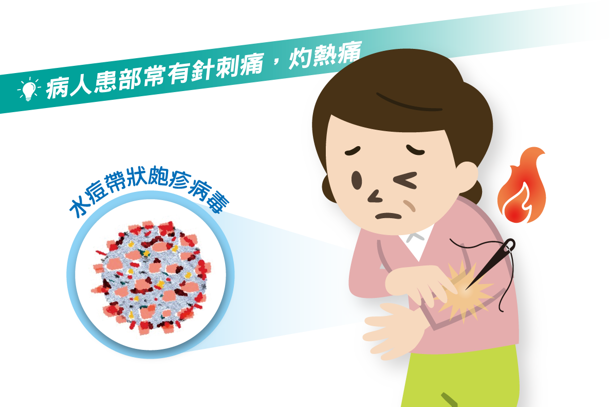 病毒型:皰疹病毒復發後,大都數周就回到休眠期,但是少數病人體內病毒仍活躍中且刺激神經,產生劇烈抽刺痛。需給抗病毒藥物,才能減緩疼痛。