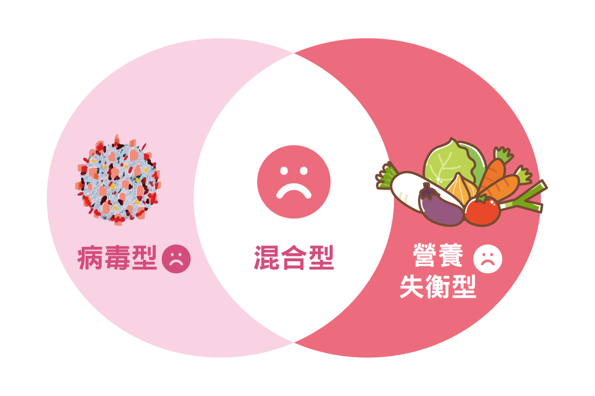 營養失衡型:偏食、素食等造成。依抽血檢查結果,確認病人缺乏的營養素,給予靜脈點滴補充與口服補充營養補充劑,可減緩疼痛。