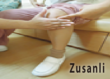 Zusanli: Tekanan jari di sisi luar kering kiri dan kanan dengan kedua tangan, dan sekitar empat jari lebarnya di bawah patela.