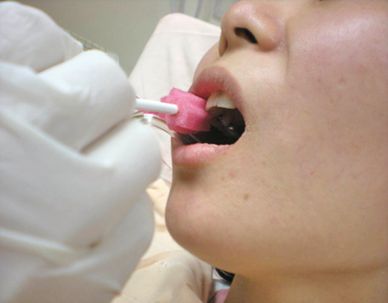 - Có thể vừa dùng ống tiêm chân không nối kim mềm số 20 hút nước súc miệng hoặc nước trà xanh rửa vòm miệng, vừa dùng ống hút đờm hoặc máy hút nước bọt để hút nước súc miệng sau khi rửa vòm miệng.