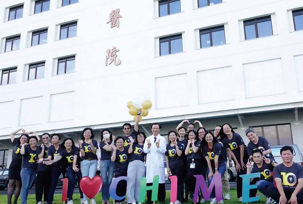 承蒙邵詩媛副院長的肯定,院慶系列活動籌畫小組請我負責規劃7月28日這天的「回顧與感恩」院慶活動。在夏日艷陽波灑在綠意盎然的院前景觀下,中島布置了排著“CHIMEI”字樣的彩色風車,許文龍創辦人手做的“榮耀天使”雕像,也矗立在草坪上,顯出奇美醫療與藝術融合的特色。全院穿上了十周年紀念衫,大家忙碌地張羅,興奮期待許文龍創辦人的蒞臨與奇美醫療體系大家庭的相聚。