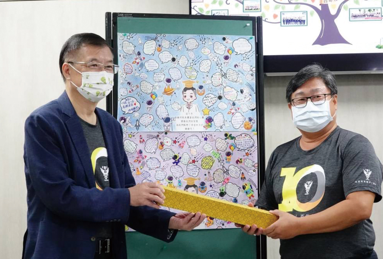 回想這十年來,在董事會、經營決策委員會、奇美醫院與柳營奇美醫院的支持與協助下,本院的進步有目共睹、民眾的肯定與信賴也與日俱增。奇美有一個被醫界所稱羨、最支持醫院發展的董事會,也感恩有一位運籌帷幄、給我們精神與實質策略支持的重要舵手-邱仲慶榮譽院長。邱仲慶院長與奇美團隊成就了我們的成長,也創造了台灣社區醫院經營的奇蹟與典範。8月1日邱仲慶院長即將榮退,幾位資深主管含淚致上感恩之詞,邵詩媛副院長帶領院內美女們獻花、王覲文副院長送給邱仲慶院長滿滿祝詞的特製卡片;而周偉倪院長則是送上一項非常特別的紀念品是由奇美醫院3D列印中心製作的佳里奇美醫院模型。模型前方放置的一管試管,還裝著醫院的泥土呢!這可是獨一無二、意義非凡的禮物!