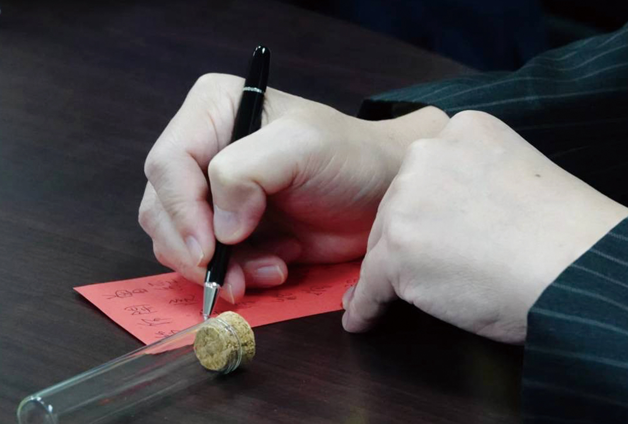 在看完二支精彩的回顧影片,我們請與會的董事會貴賓、院區主管,在工作小組準備的「許願卡」寫下對醫院的期待,完成後放入「希望試管」,最後裝入「時光寶藏箱」,封箱後交給我們的周偉倪院長保存!也許十年後的二十周年慶,我們會再“開箱—尋寶”!看看我們跟今天又有甚麼不一樣!
