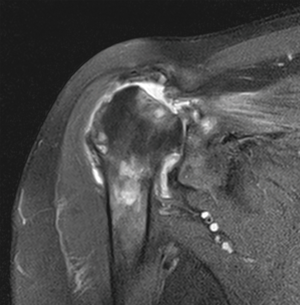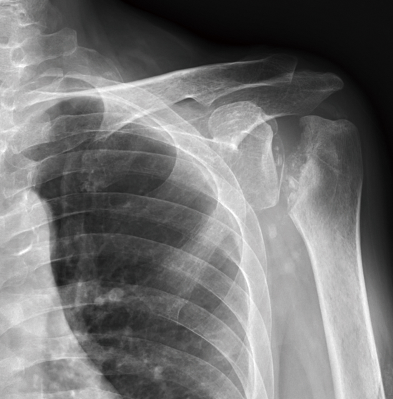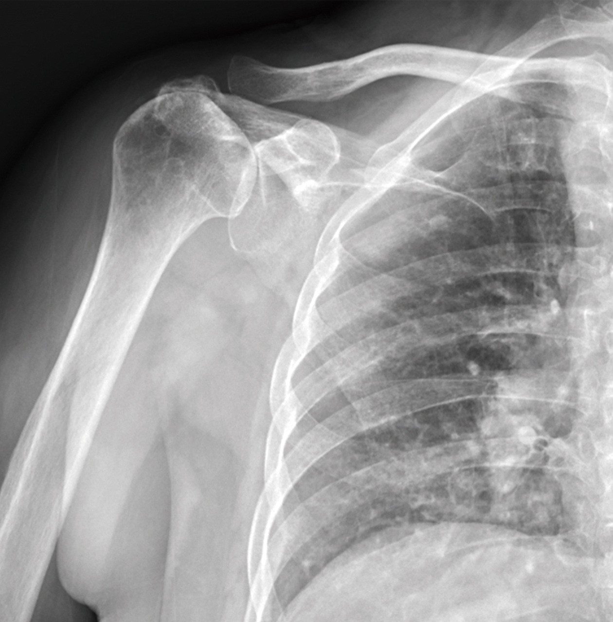 右肩關節炎合併旋轉肌腱斷裂,經反置式人工全肩關節置換手術治療。