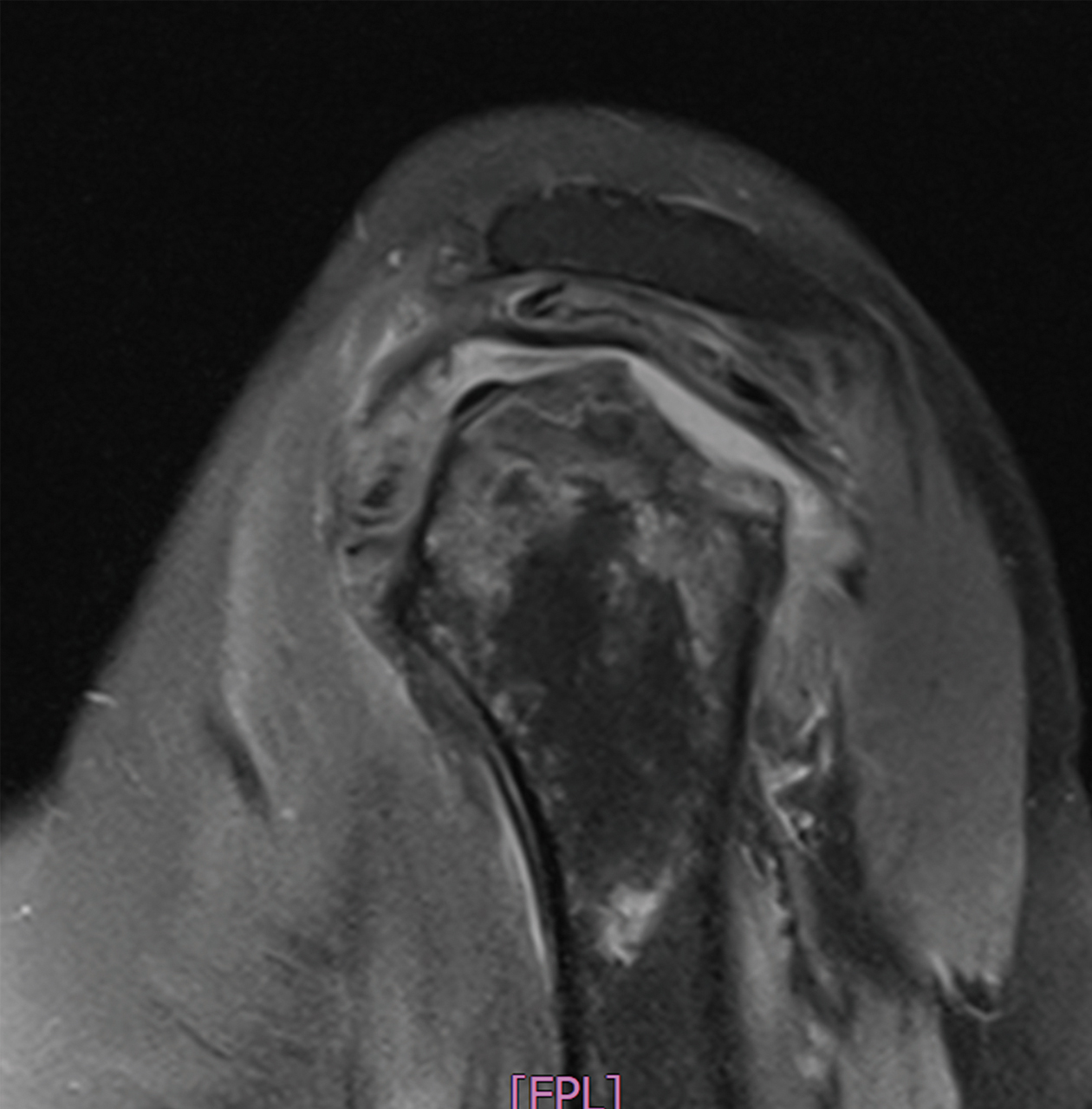 黃先生52歲,左肩疼痛多年,手無法上舉,一年來症狀加劇,經檢查發現肱骨頭缺血性壞死併肩關節炎,核磁共振發現大片全層旋轉肌破裂,接受了反置式人工全肩關節置換手術治療,並投入計劃性復健治療,目前疼痛消失,手已可上舉接近150度。