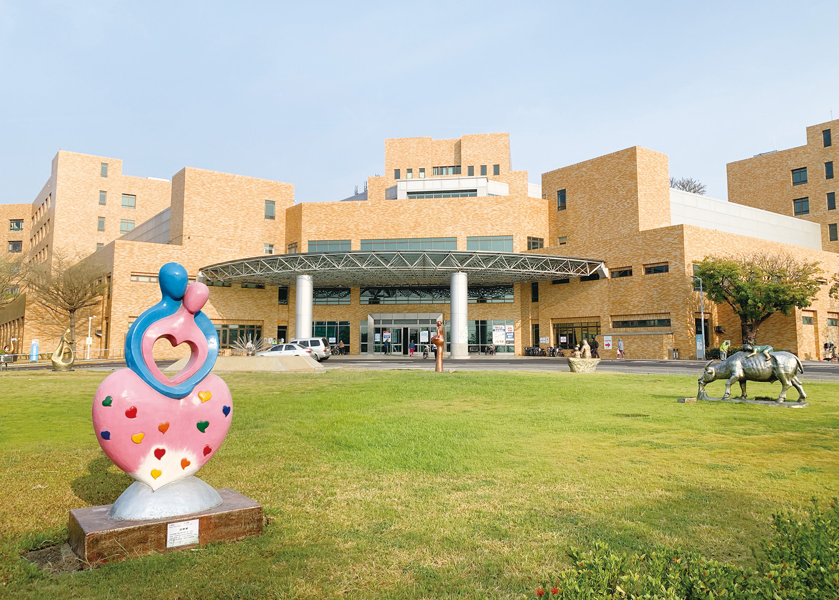 2021年因為保養榮耀天使的因緣認識了名雕塑家王昭旺老師,王老師創立的「亞星景觀雕塑」,其理念「用雙手堆積情感,讓愛與大地結合」與醫院的宗旨「關懷、專業、效率」有異曲同工之妙,於是邀請王老師將部分作品展示在院區的大門前草坪、一樓中庭、空中花園、健康管理中心,期待讓醫院各個角落都能充滿藝術氣息,目前在醫院的雕塑作品共有近20件。
