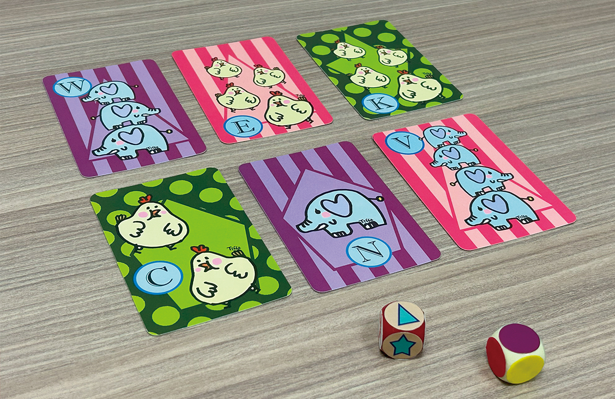 以本文開頭提及的腦傷個案之問題為例,可以先從個案主觀困擾的問題著手,例如:個案認為自己容易情緒暴走,生氣來得快也去得快。在治療中可以和個案一起分析引發生氣的情境因素,並且協助他覺察憤怒時的生理變化,進而討論適合個案運用的情緒調節策略,像是避免過度的聲光刺激,或是使用一個能自我提醒的手環,提醒自己快要生氣之前要「停下來」。另外,針對家屬提及難以轉換思考的認知彈性障礙,一方面可持續與個案討論,促進他覺察該問題所延伸之生活、學業或工作的困擾,另一方面可以運用具體且能引發學習動機的媒材,例如:桌遊(如圖),逐步讓個案練習轉換注意力焦點或是執行規則,並鼓勵個案將在治療室的練習經驗應用在生活中。舉例來說,在遊戲中會請個案依據擲到的骰子特徵(如:花樣、顏色或數量),找出符合該特徵的卡牌,遊戲過程中會再依照個案的能力逐步調高難度,例如:增加需要尋找的特徵數量。當遊戲練習結束後,再接續與個案討論當前生活或工作中遇到的困擾,例如:當個案不得不和自己排斥的人相處的時候如何應對,或是當主管交代過多工作事項時可以怎麼處理等,從中鼓勵個案連結運用轉換觀點的能力,以面對和處理真實生活的情境問題。