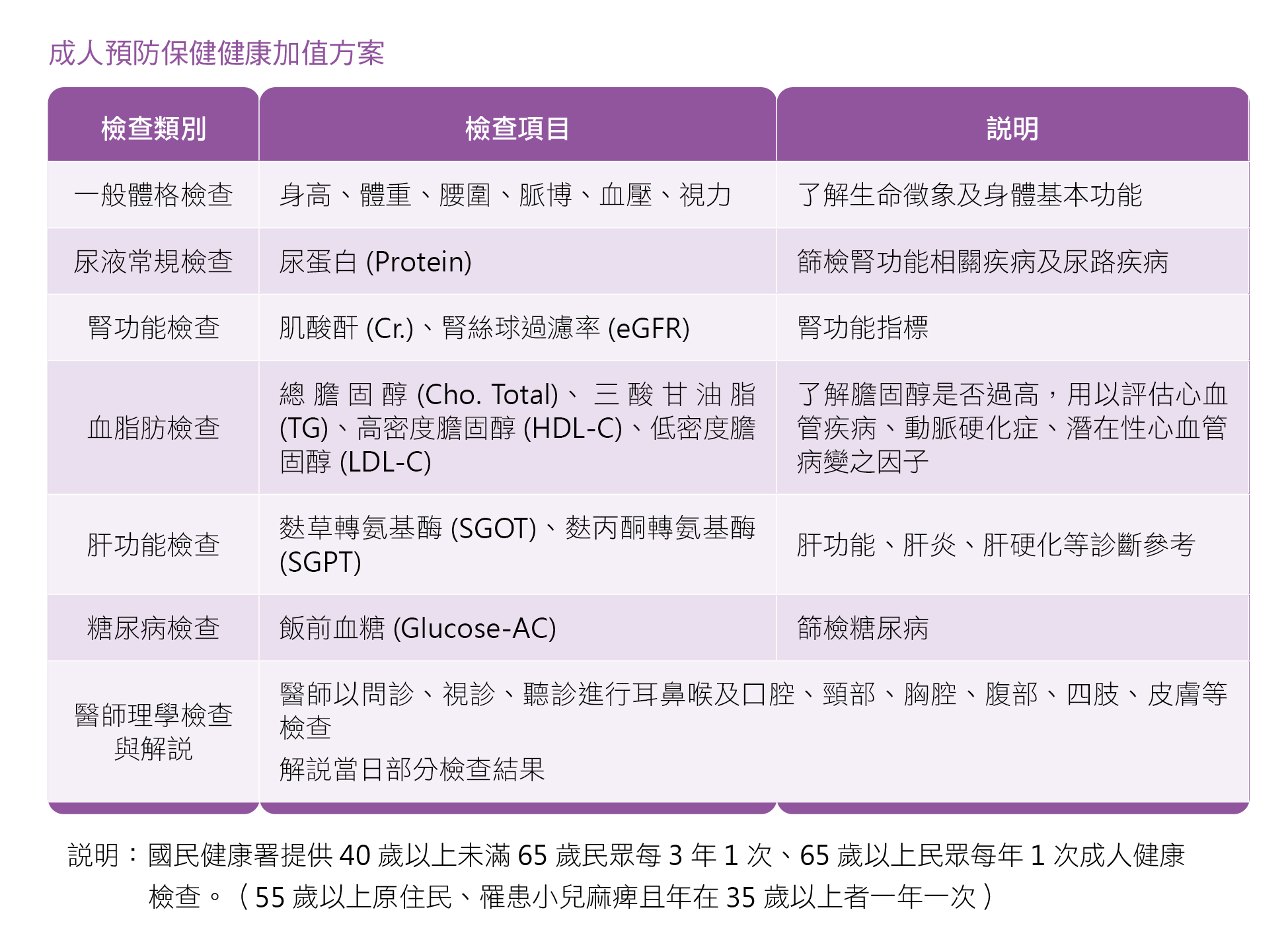 柳營奇美健康管理中心本著量身打造符合每個族群需求的健康檢查服務,提供「負擔的起、有價值的」健康檢查的價值觀,推廣民眾聰明地善用政府資源做相關預防保健與篩檢,符合以下條件的民眾皆可於柳營奇美健康管理中心一站式完成免費成人預防保健、B、C肝炎篩檢、五癌篩檢預約,若條件尚未符合前述補助規則,亦有小資健康檢查與高階健康檢查,規格一應俱全,與民眾們一起實現「健康檢查一下子,守護家人一輩子。」