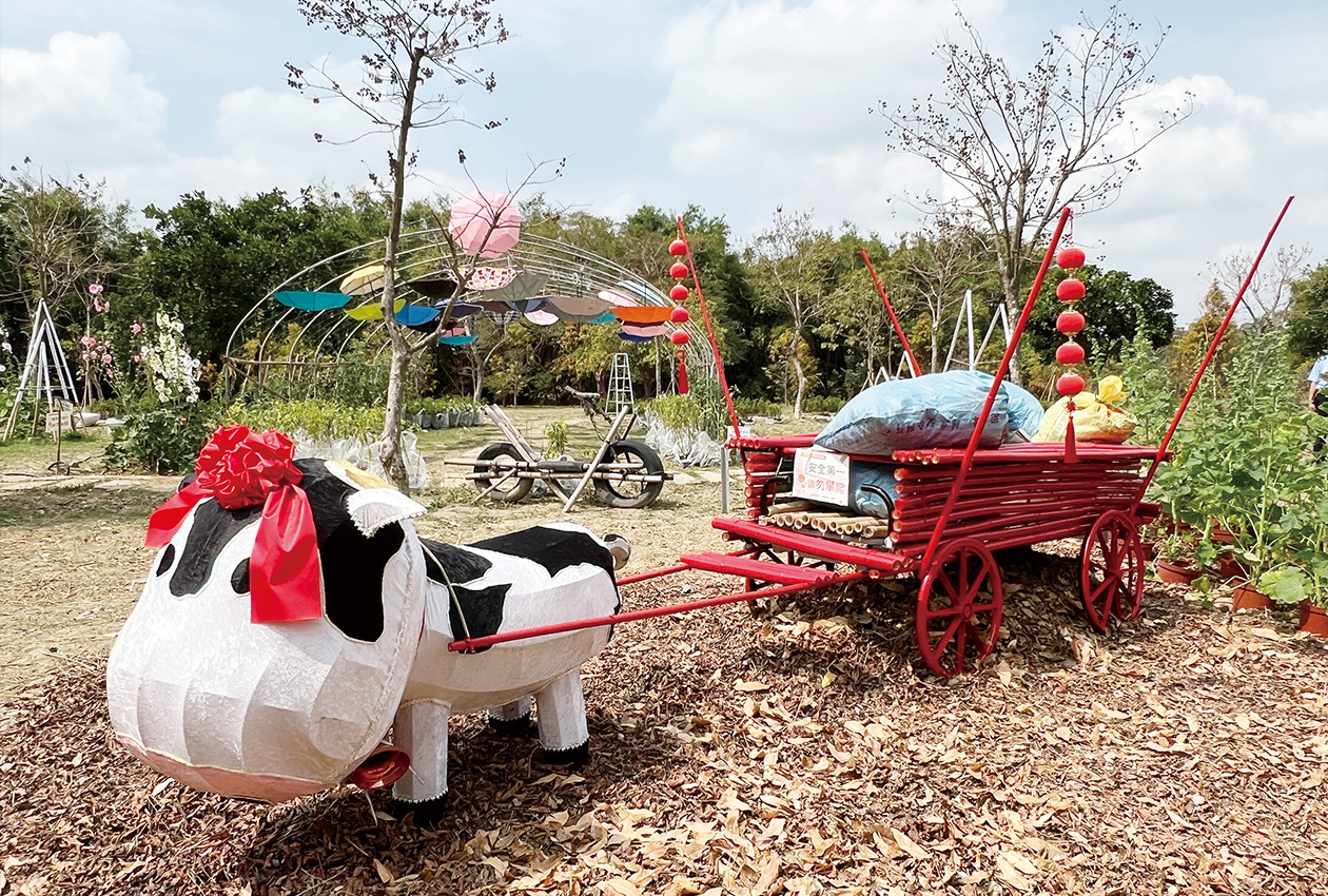 恣意走在園區,可以發現座落不少雕塑大師定期更置的大型藝術品,也有同仁利用廢棄醫材及竹子創意手作的牛車、雪橇、機車、薑餅屋等裝置藝術,將園區點綴得故事淋漓。而素來我們以「博物館醫院」自許,院內設置「奇藝角落」多年,無償提供藝術家展覽書畫、攝影作品,且各公共廊道亦懸展多幅奇美博物館複製名畫,讓民眾在排遣候診時能片刻歇腳玩味揣韻。