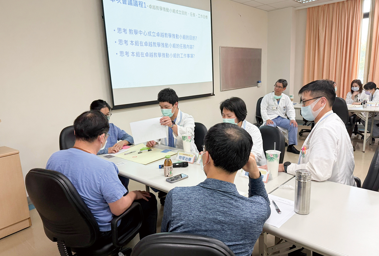 卓越教學推動小組成立目的是讓各職類教師可以交流提出教學困難,成員包含來自各科的卓越教師,共13名,並訂定每月召開一次例會,視情況彈性調整。我有幸被推選為今年總召,首要任務是執行蔣維凡部長交付的第一項指令:規劃跨領域全人照護師資培育方案。
