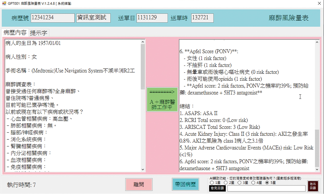 │奇美醫學中心的「四代AI麻醉風險系統」