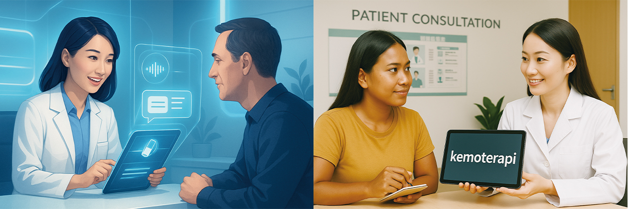 根據內政部及勞動部統計,截至2025年3月,臺灣外籍移工族群約占臺灣人口的3.5%,以印尼、越南、菲律賓為主。這些不同語言背景的病人,常無法正確理解醫療資訊,特別是在藥物使用與副作用說明時,傳統上多依賴翻譯人員或圖片進行簡要溝通,但往往難以充分傳達衛教重點,易造成資訊失真或誤解,進而影響病人信任與治療成效。