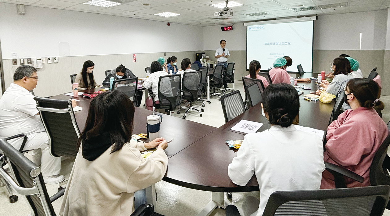 在這樣的精神下,在護理部劉憶萍部長的領導下,秉持著關懷員工、守護病人的初心,特別引薦屏東科技大學黃育信老師蒞院指導,帶領我們從基礎認識到臨床應用,逐步展開人因工程的改善之路。我們邀請有興趣的同仁參與,由黃老師從基礎課程開始帶領大家認識人因工程,並逐步將理論帶進臨床應用。透過課程與實作,大家組成團隊,一起嘗試改造單位環境與工作流程。這段學習歷程讓護理人員逐漸體會到,人因工程並不是遙不可及的理論,而是可以貼近臨床、貼近生活的改善工具。