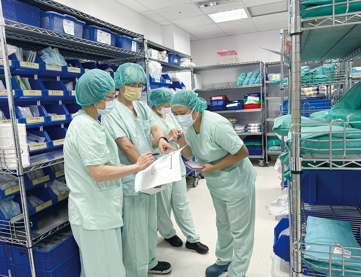 屏東科技大學黃育信老師與開刀房團隊進行庫房改造討論