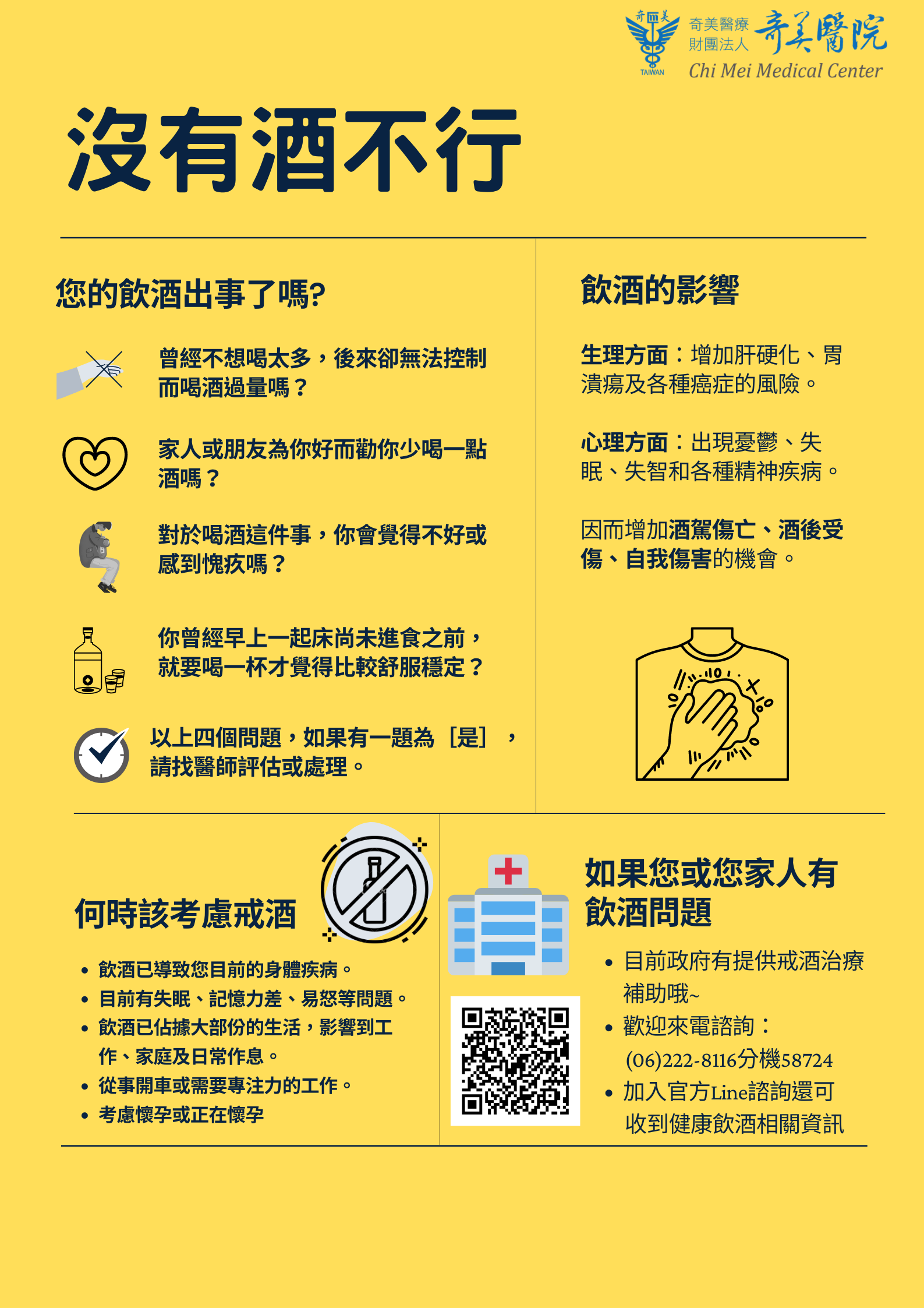 戒酒諮詢專線:(06)222-8116 分機58703、58724