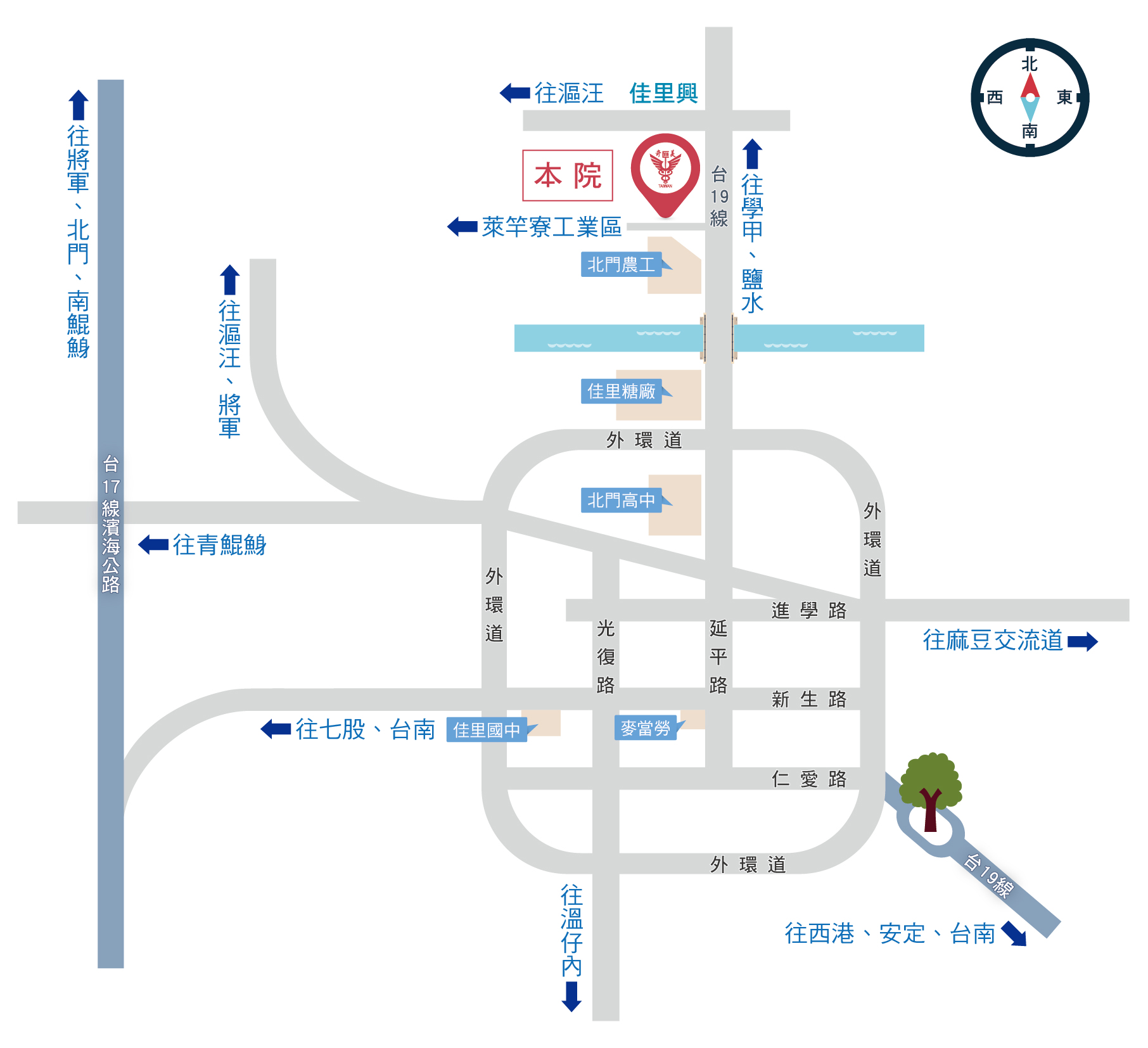 佳里奇美醫院:台南市佳里區佳興里佳里興606號 電話:(06)726-3333