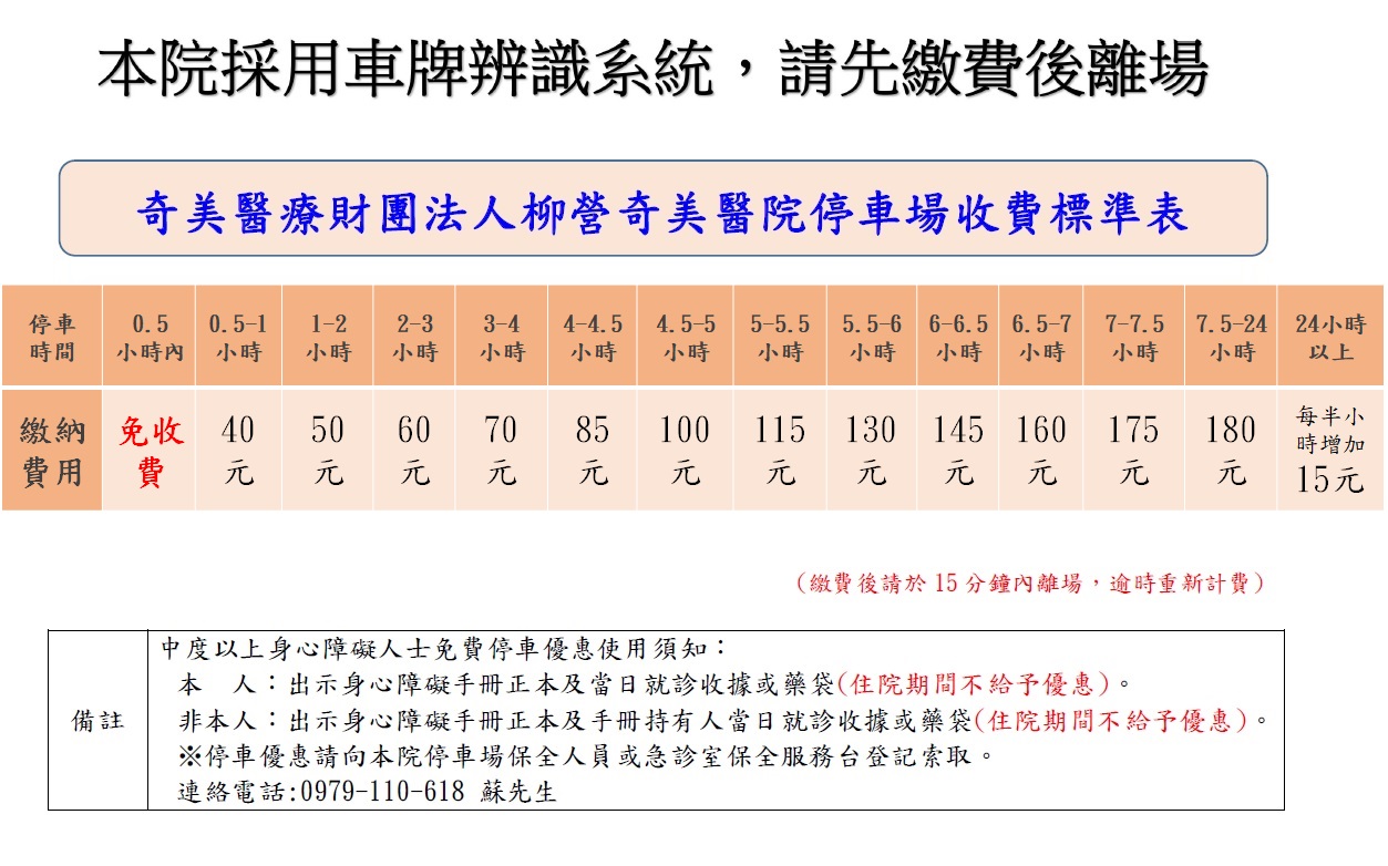 柳營奇美醫院停車場停車須知